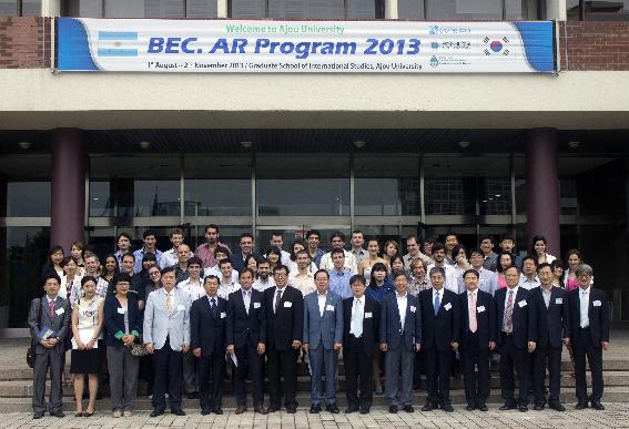 우리학교 국제대학원(원장 임재익)이 8월 2일 11시 국내 처음으로 아르헨티나 정부가 지원하는 베카르(BEC.AR) 프로그램 입학식을 개최했다. 베카르는 아르헨티나 장학 프로그램의 약자이지만 스페인어로 ‘장학금’이란 뜻이다. 아르헨티나 정부가 국내 대학의 교육프로그램을 이용해 자국 연수생들을 위탁 교육하는 것은 우리학교가 처음이다. 우리학교는 교육비용 전액을 아르헨티나 정부로부터 지원받아 향후 3년간 매년 30여명을 교육하게 된다. 이 프로그램은 아르헨티나 총리실 주도로 시행하는 사업에 국제대학원이 우리학교 강점 분야의 교육프로그램을 제안하고 선정된 경우이다. 이후 사업의 실현을 위해 올해 4월 아르헨티나 정부는 우리 정부와 1차, 우리학교, 한국사학진흥재단과 2차로 과학기술분야에 대한 교육협약을 체결했다. 이번 베카르는 아르헨티나 정부가 자국민 중 공공기관과 기업의 과학기술분야 전문가 268명을 선발해 미국, 프랑스, 이탈리아, 브라질 그리고 한국으로 교육연수를 보내는 프로그램이다. 이번에 선정된 국가 중 미국, 프랑스, 이탈리아는 석사학위과정으로 나머지 국가는 비학위 과정으로 운영되며 한국에 오는 29명은 모두 우리학교에서만 교육을 받는다. 이 프로그램은 대학원 연구과정으로 설계된 1년의 교육과정이 3개월 만에 진행된다. 총 9개과목 27학점이며 432시간의 교육시간으로 구성되어 있다. 교육생들은 공통적으로 혁신적 경영과 경제관리, 산업시찰, 한국어, 그리고 각자의 전공에 따라 IT(Information Techonology), BT(Bio Technology), NT(Nano Technology) 분야 교육이 개별적으로 이루어진다. 아르헨티나 산업발전을 주도할 관리자, 지도자 양성에 교육의 초점이 맞추어져 있다. 안재환 총장은 “어려운 과정이지만 정부가 선발한 우수 인재들이니만큼 무리 없이 소화해낼 것이라 믿는다.”며 “앞으로도 아르헨티나 정부와 더욱 새로운 프로그램 개발을 위해 협의해 나가겠다”고 말했다