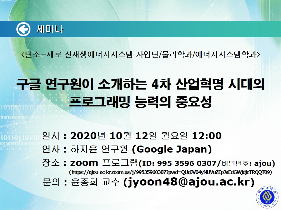 | 957 | 세미나/포럼 | 교내 | 2020-10-05 | ||
