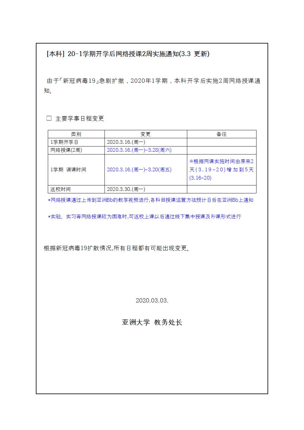 [Notice] Two weeks of on-line classes will be offered from the start of the Spring semester to the end of March